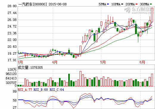 8日新能源汽车概念股盘后统计 一汽轿车涨停...
