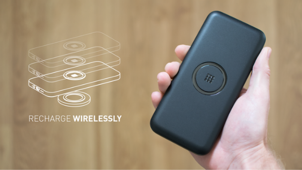 移动电源上方有一个无线充电发射器,是用来给手机充电的,而下方有一个无线充电接收器,可以给移动电源进行无线充电。...