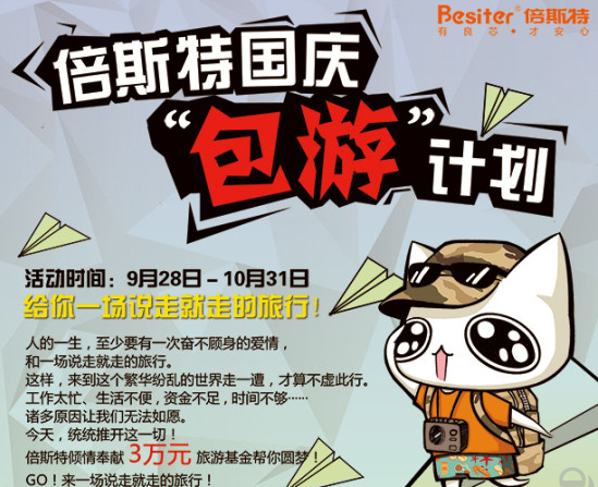 参加倍斯特国庆包游计划吧!一切应有尽有!倍斯特移动电源国庆包游大奖等你来拿!...