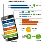 2014年全年,中国手机市场累积出货量为4.52亿部,比2013年的5.79亿部下降21.9%。...