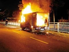 深圳一辆货车着火 装有900多斤手机废旧电池