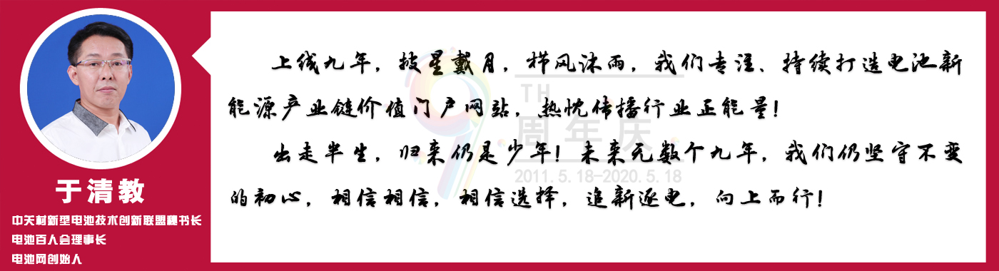 九易春秋,风华正茂。热烈祝贺电池网上线九周年,我们希望跟随这个中国新能源媒体领域的领先旗帜,在新能源电池的长征路上共同成长!