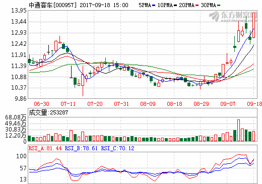 15日新能源汽车概念股盘后统计 中通客车跌幅4.04% ... 查阅全文 2017-09-15