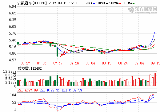 13日新能源汽车概念股盘后统计 安凯客车涨停 ... 查阅全文 2017-09-13