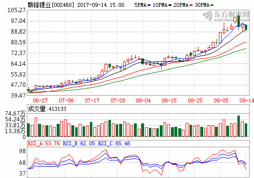 14日锂电池概念股盘后统计 赣锋锂业跌幅5.39% ... 查阅全文 2017-09-14