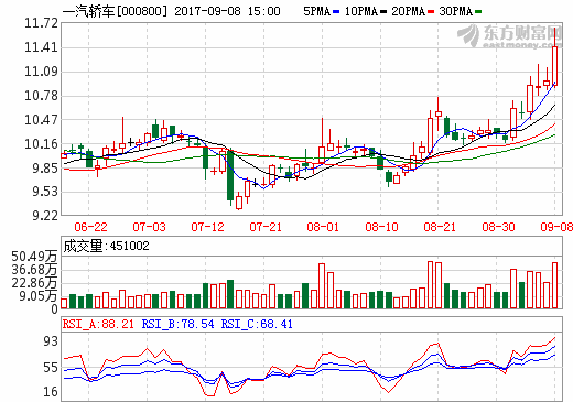 8日新能源汽车概念股盘后统计 一汽轿车涨幅4.10% ... 查阅全文 2017-09-08