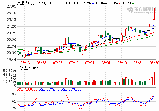 30日智能穿戴概念股盘后统计 水晶光电涨停 ... 查阅全文 2017-08-30