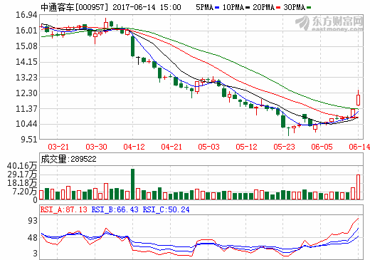 14日新能源汽车概念股盘后统计 中通客车涨幅7.60% ... 查阅全文 2017-06-14