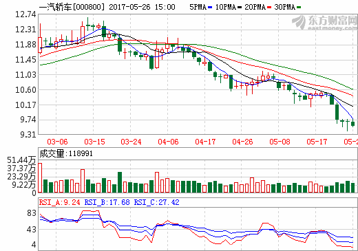 26日新能源汽车概念股盘后统计 一汽轿车跌幅1.24% ... 查阅全文 2017-05-26