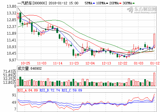 12日新能源汽车概念股盘后统计 一汽轿车涨停 ... 查阅全文 2018-01-12