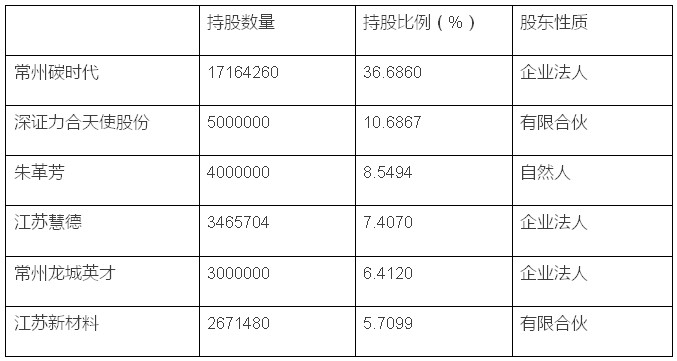 作为高科技企业的二位碳素公司目前没有实际控制人,根据股份转让说明书的披露,其持有5%以上的股东如下表所示: