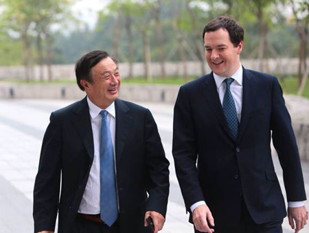 2013年,华为创始人兼CEO任正非会见到访华为深圳总部的英国财政大臣乔治·奥斯本。