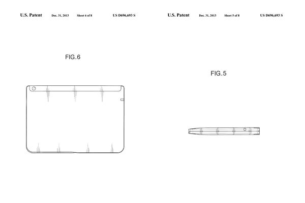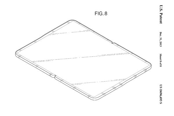 该项专利的专利号为D696693,在专利描述图上非常直观的展示了可折叠柔性屏幕平板电脑的设计,而这不仅仅是普通的弯曲,而是可以像一本书一样直接180度折叠。这是一个令人印象深刻的概念,甚至能够彻底颠覆我们对便携式平板电脑的理解。不过目前这仅仅是三星公司停留在专利阶段的一种概念,并且在专利中并没有涉及更多的细节。不过想到最近一段时间各种关于三星公司的柔性屏幕面板、手机或电视机产品的消息,我们相信三星公司已经开始了相关研究。