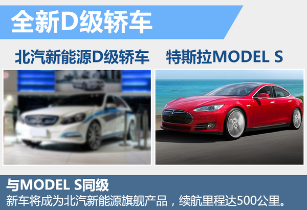 在北汽新能源的规划中,在2017年将推出更具产品实力的全新高性能D级纯电动轿车,新车也将成为北汽新能源的旗舰产品,其续航里程将达到500公里。从定位来看,该车将与特斯拉MODEL S处同一级别。按照此前消息,北汽新能源与Atieva联合开展的高性能电动汽车设计研发工作正在硅谷紧锣密鼓地推进之中,新车有望是该款D级轿车。
