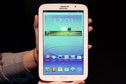 之前就有传闻称三星会推出一款新的平板,现在在巴塞罗那的MWC上三星终于正式宣布了这一消息。这款新平板名叫Galaxy Note 8.0,同之前的Note 10.1一样都是1280 x 800的TFT显示屏,但是像素密度会更高(189ppi)。配置上,Note 8.0配有三星自家生产的1.6GHz的Exynos 4 Quad处理器,2GB RAM,支持WiFii a/b/g/n和蓝牙4.0,同时支持HSPA+ 21(850/900/1900/2100MHz)。内部存储最高可达32GB,电池电量为4600mAh。Note 8.0搭载Android 4.1.2,界面则为三星的TouchWiz UX。