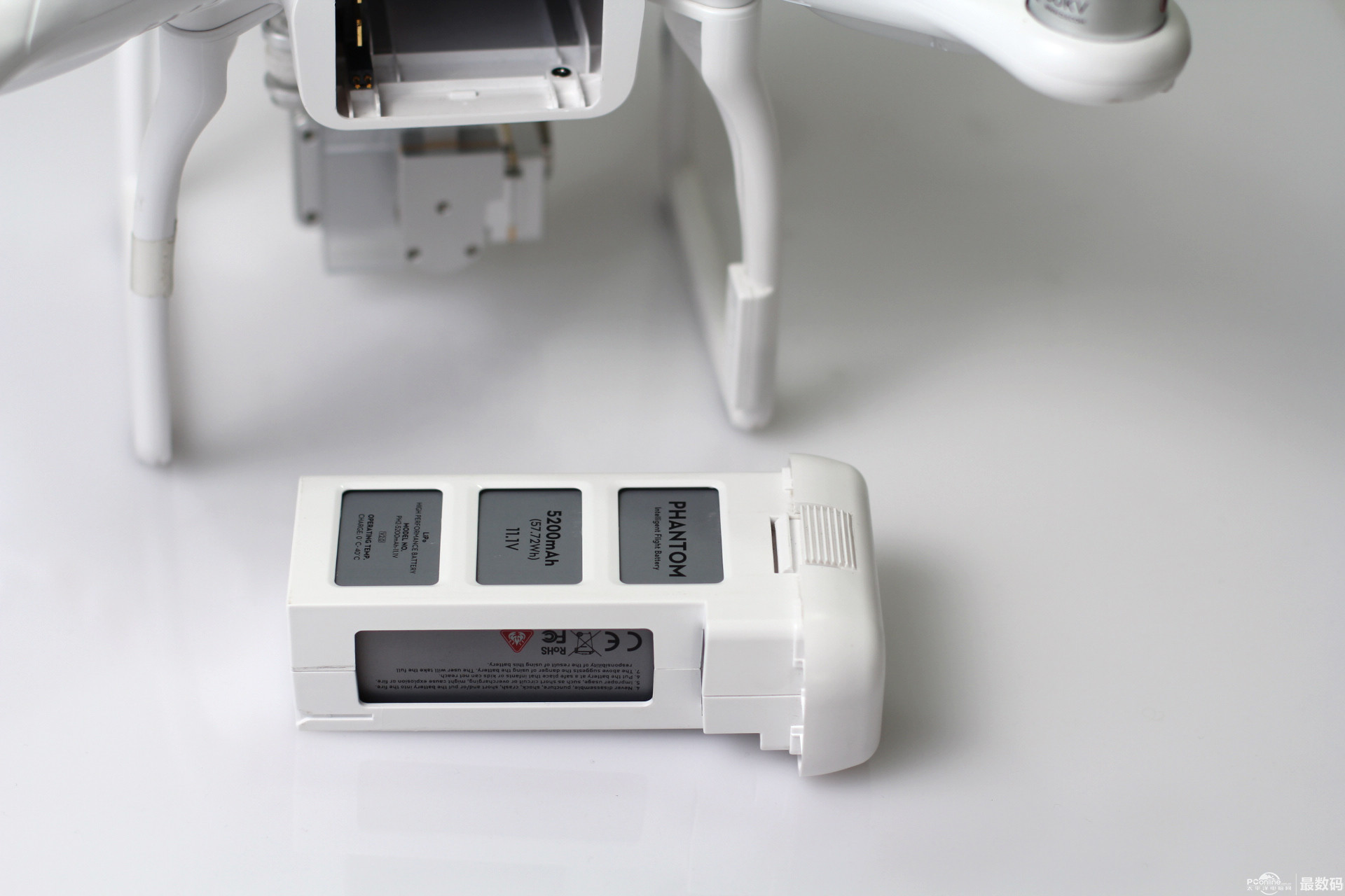 机身、电池5200mhA 电池仓 短按灯亮显示电池电量,装上机后长按是开机 固定式起落架,三轴陀螺稳定云台和相机