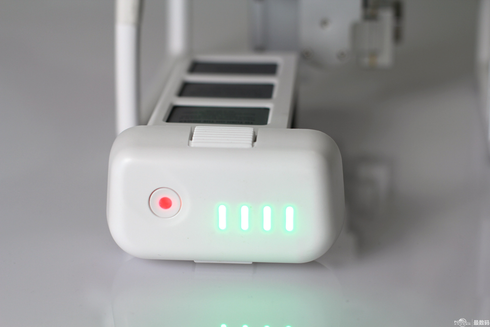 短按灯亮显示电池电量,装上机后长按是开机
