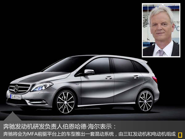 之前曾有传言戴姆勒并不看好新能源领域,尤其是电动车的发展。不过近日,戴姆勒宣布将收购两家合资电池制造商所有股权,未来其在锂离子电池方面的产能将大幅度增加,戴姆勒用事实击碎了“放缓新能源投入”的谣言。随着电池产能的提升,其还在规划新混动系统的研发,小排量引擎的使用将成为最大亮点。对此奔驰发动机研发负责人伯恩哈德·海尔(Bernhard Heil) 在接受采访时表示:“奔驰将会为MFA前驱平台上的车型推出一套混合动力系统,其由一台直列三缸发动机和电动机组成。”