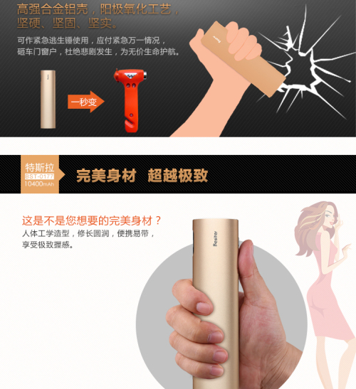 精密CNC工艺处理,光滑圆润,线条流畅,与iPhone一脉相承。高强合金铝壳,阳极氧化工艺,坚硬、坚固、坚实。可作紧急逃生锤使用,应付紧急万一情况,砸车门窗户,杜绝悲剧发生,为宝贵生命护航。
