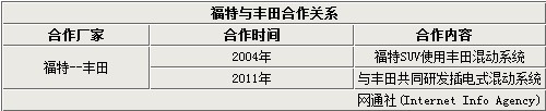插电式混合动力系统可使汽车在行驶中主要以电能形式驱动车辆前进,当电池电量用尽时,汽油机为电池充电,从而驱使车辆能够继续前进。此前福特官方表示:为提高能源利用率,福特致力于从Ecoboost汽油发动机、混合动力到插入式混合动力、纯电动汽车的研发,而混合动力系统是其中的核心部分。网通社查阅了相关资料后了解到:早在2004年,福特签署协议旗下SUV车型使用丰田混动技术,而在7年之后又签署了与丰田共同研发该技术的协议。