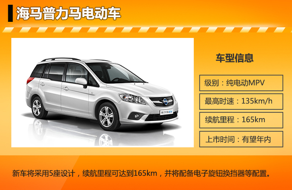新能源产品已逐渐成为各家车企未来市场规划的重点领域之一,在自主品牌中,海马汽车一直致力于新能源汽车技术的研发和产业化发展,早在2005年,就把纯电动汽车作为新能源战略的研究方向,开发出的普力马电动车在经过了北京、山东等多地示范运营后,即将登陆民用车市场。近日网通社从海马汽车官方获得普力马电动车配置信息,新车将采用5座设计,续航里程可达到165km,并将配备电子旋钮换挡器、8寸TFT液晶显示屏等诸多科技配置。