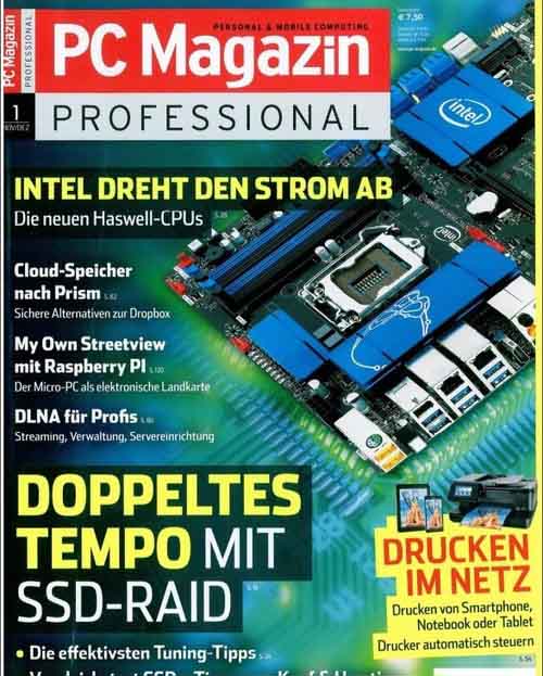 此次报道DEBOCHX6000的是德文版《PCMagazin》。《PCMagazin》是世界最著名的电脑刊物,也是全世界第一大IT媒体ZD集团的旗舰刊物,以产品和技术评测著称。它是一本以实验室产品评测为基础,为广大中小企业用户和强有力的个人用户提供IT产品购买指导信息为目标的杂志,是消费者和企业采购的很好参考。