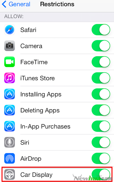 而在该更新中最值得注意的便是在设置的“限制”(restriction)菜单中,苹果允许用户打开或者关闭“汽车显示屏”。苹果增加该设置意味着“车载iOS”功能的到来或许要比预期的更快。