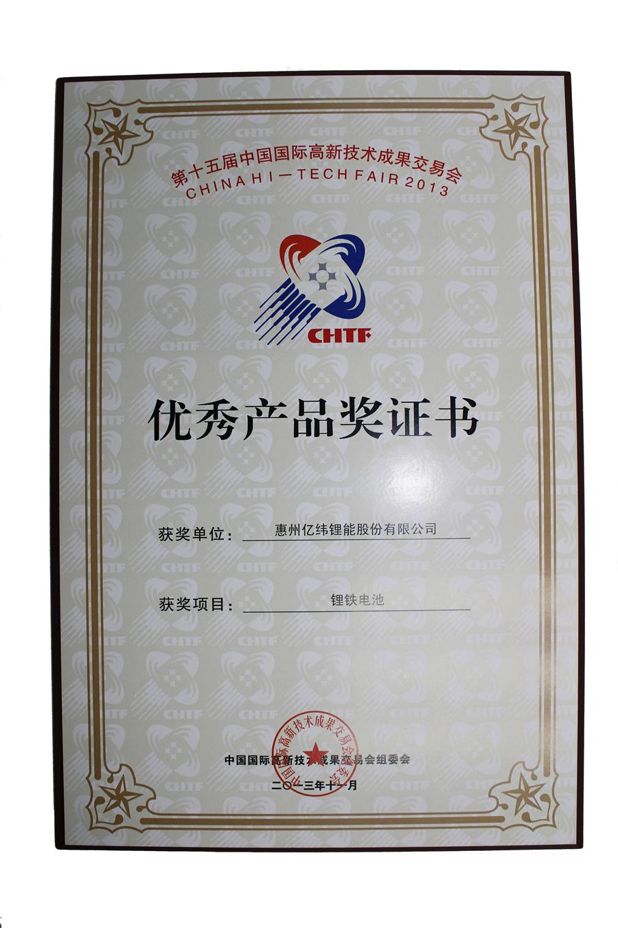 近日,亿纬锂能锂铁电池项目在第十五届中国国际高新技术成果交易会上获得“优秀产品奖”。
