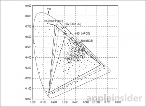 据悉,该专利名为Quantum Dot-Enhanced Display Having Dichroic Filter。据外媒报道称,“在技术层面上来说,量子点(QD)是一种纳米晶体--在某些情况下,它的个头甚至比病毒还要小。这种将由多种不同的半导体材料制造而成的晶体将可以呈现出量子力学中特有的特点。显示屏制造商和光学领域其他的厂家最感兴趣则就是QD的发光特性。确切的说,这种材料可以“调节出”或产生非常窄的光谱。
