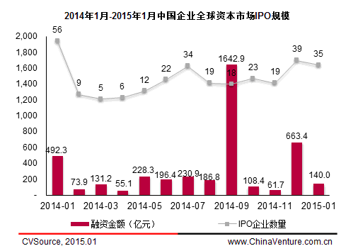 图1 2014年1月-2015年1月中国企业全球资本市场IPO规模