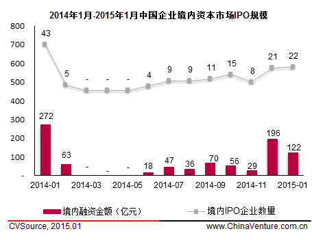 图2 2014年1月-2015年1月中国企业境内资本市场IPO规模