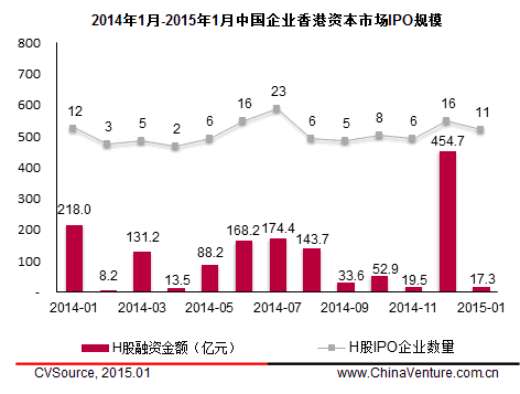 图3 2014年1月- 2015年1月中国企业香港资本市场IPO规模