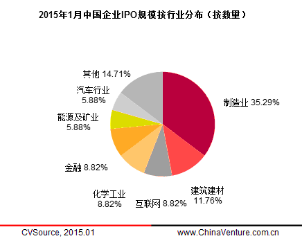 图4 2015年1月中国企业IPO规模按行业分布(按数量)