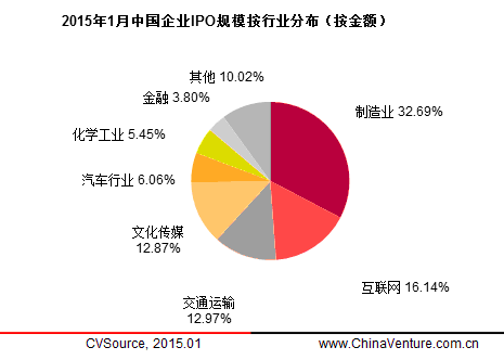 图5 2015年1月中国企业IPO规模按行业分布(按金额)