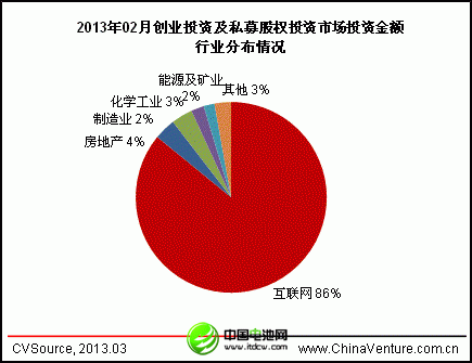 图6 2013年02月中国创业投资及私募股权投资金额行业分布情况