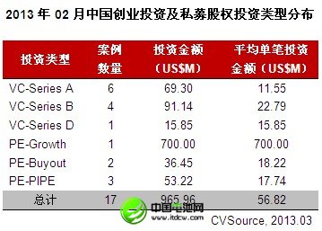 表3 2013年02月中国创业投资及私募股权投资类型分布