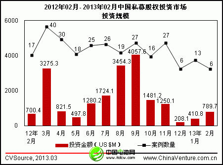 图4 2012年02月-2013年02月中国私募股权投资市场投资规模