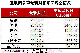 表2 互联网公司最新财报账面现金情况
