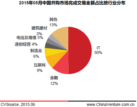 图4 2015年05月中国并购市场完成交易金额按行业分布