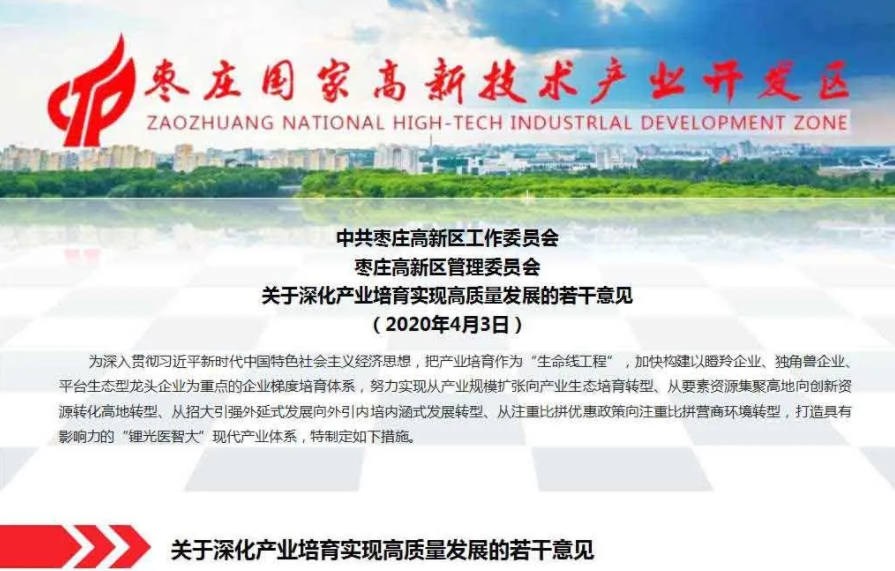 近日,枣庄高新区发布了产业培育18条真金白银优惠政策,其中,对新招引落户该区符合“锂光医智 ... 查阅全文 2021-03-13