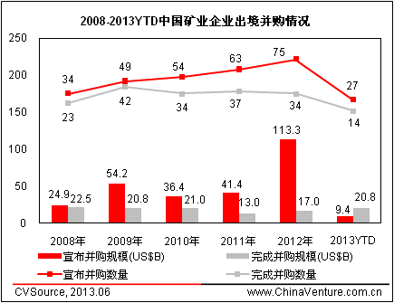 图3 2008-2013YTD中国矿业企业出境并购情况