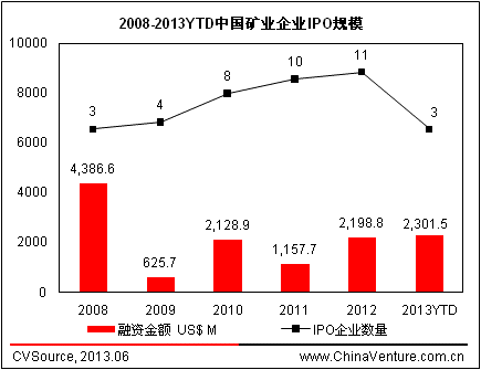 图1 2008-2013YTD中国矿业企业VC/PE融资情况