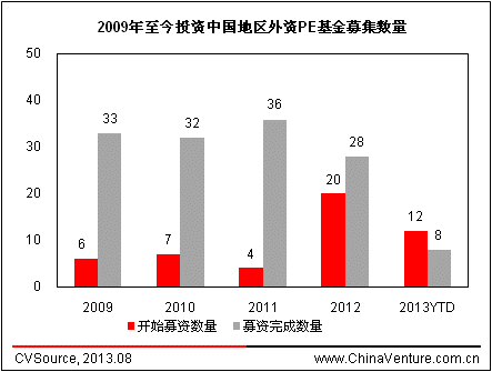 图1 2009年至今投资中国地区外资PE基金募集数量