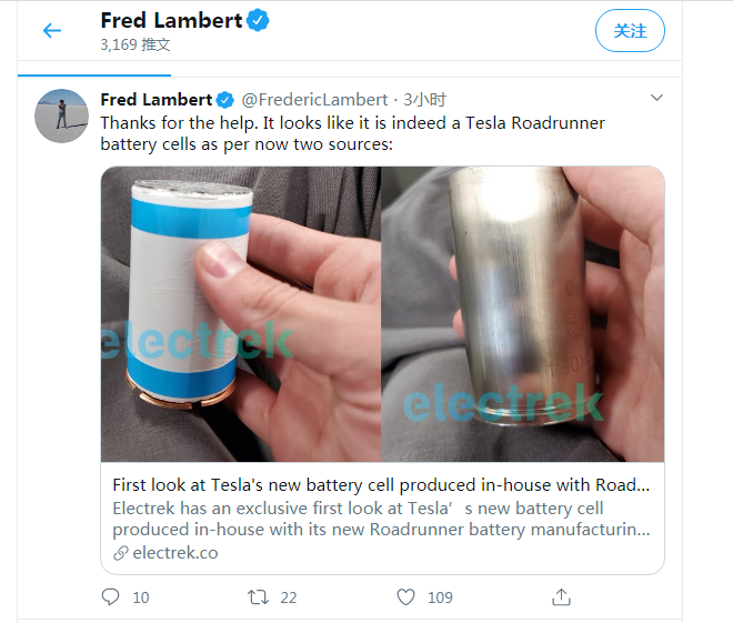 特斯拉Roadrunner内部项目生产的新电池图片首次曝光,这种新电池可以将电池成本降至100美元/千瓦时 ... 查阅全文 2020-09-17