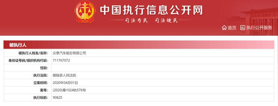众泰汽车的麻烦不止于此。据天眼查消息,因买卖合同纠纷,众泰汽车股份有限公司董事长金浙勇已于4月4日被鄢陵县人民法院发布限制消费令。中国执行信息公开网显示,该案的执行标的为9.08万元。