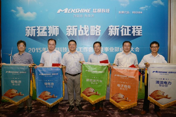 陈乐伍董事长发表《猛狮五年发展战略目标》重要讲话,描绘了猛狮科技2015--2020年战略发展方向和总体目标,阐述了公司未来五年在铅电池、锂电池、新能源汽车、清洁电力以及电子商务领域的发展策略以及重要举措。