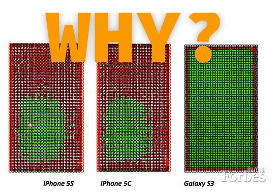 我们从这一假定的iPhone手机“失利”中能了解到什么?首先,正如阿诺特指出的那样,让你的测试与实际使用模式保持一致,这非常重要。除了某些游戏以外,大部分智能手机应用程序都不会同等用到整块触摸屏。实际上,有一些“最佳触摸点”与iPhone测试中显示的灵敏区域是完全吻合的。其次,正如Greylock的合伙人(及Mozilla前首席执行官)约翰•李利(John Lilly)在Medium网站上的一篇文章中所指出,苹果既不是一家硬件公司,也不是一家软件公司,而是一家“个人计算系统公司”。因此三星(一家真正的硬件公司)就像OptoFidelity一样,拿触摸灵敏度、像素密度、亮度等技术属性来衡量触摸屏。而苹果则把手机视为传递用户体验的媒介。