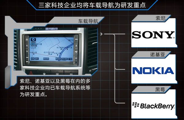 索尼、诺基亚和黑莓等品牌以车载导航为汽车领域主要研发项目