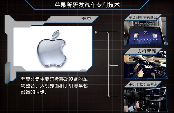 目前正处于“大红大紫”的苹果公司也早已开始进军汽车领域,并提出了i-car的造型理念。该车以玻璃材质为主体,风挡玻璃从车头一直贯穿到车尾。最为重要的是其并没有采用传统的操作方式,而是通过Home管理系统,实现驾驶。除整车外,苹果还在研发移动设备和车辆的整合、人机交互界面以及手机车载设备同步等技术。