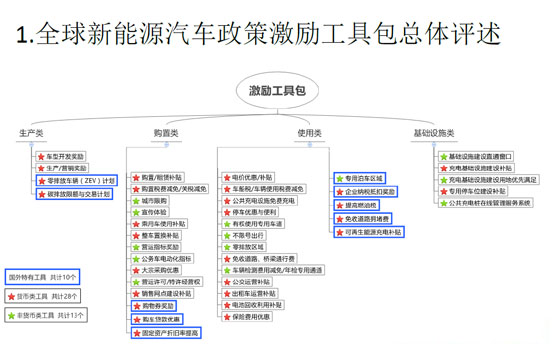 报告中提到,目前国内外主要通过货币类激励推动新能源汽车的发展;且激励工具主要集中在购置和使用环节,在生产研发以及基础设施方面的激励工具种类相对较少。同时,从市场驱动的角度上讲,新能源汽车前期市场较小,政府大力促进新能源汽车的销售,并完善车辆使用环境,将反过来推动企业的生产研发,从这个角度上讲,目前大量的工具集中于车辆的购置和使用阶段,符合新能源汽车推广应用的阶段性需求。但是,新能源汽车的推广使用,必须依靠更为完善的充换电基础设施的布局,而目前从全球看,在基础设施建设运营上的激励工具相对于车辆端的激励,灵活性还不够。